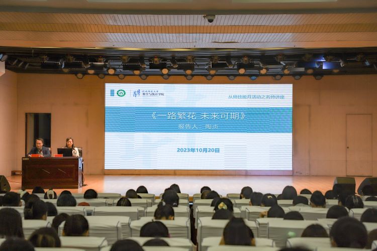 告别夏花绚烂,走进秋叶静美。10月20日晚,加勒逼 邀请信阳市第三小学省级骨干教师陶贞在理科楼报告厅为应数师范专业学生作了题为“一路繁花,未来可期“的专题报告。会议由学院党委副书记刘丰铭主持,学院部分教师、各年级学生参加了本次活动。