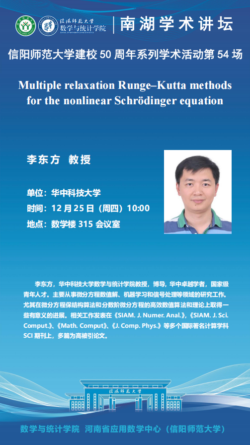 庆建校50周年之南湖讲坛:华中科技大学李东方教授——Multiple relaxation Runge–Kutta methods for the nonlinear Schrödinger equation
